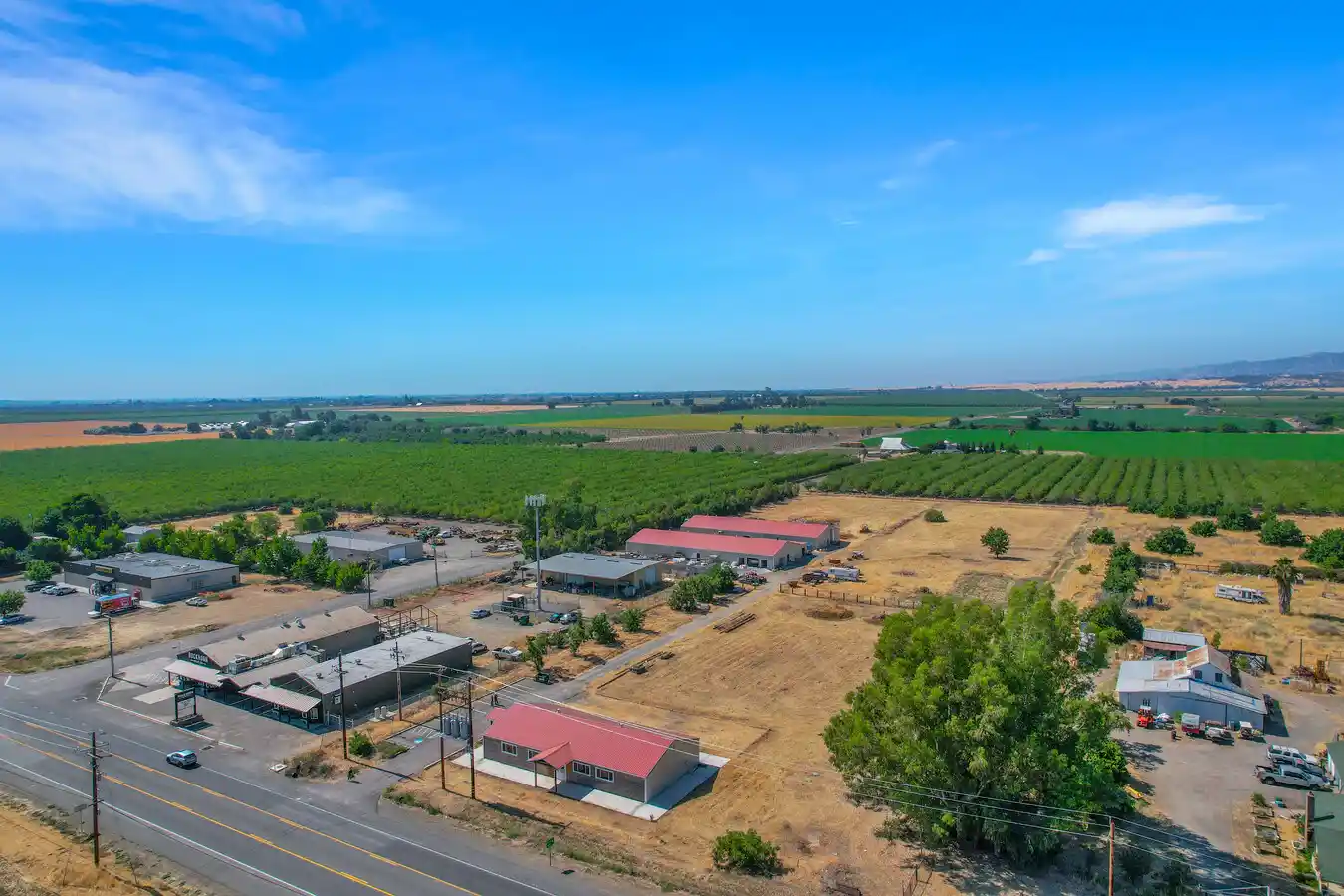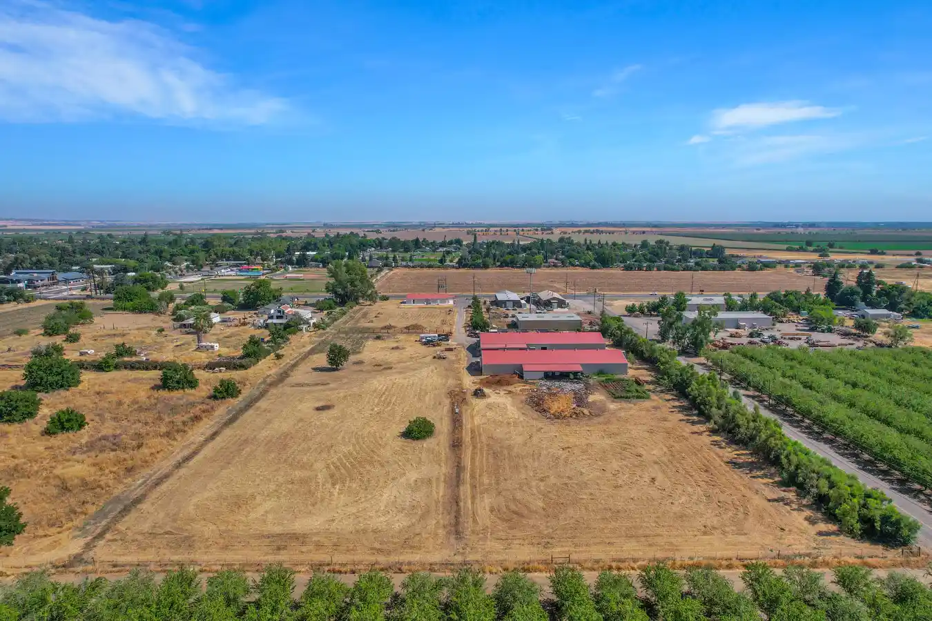 - Two commercial buildings, each 150×60 feet and 7.72-acres of agricultural land.