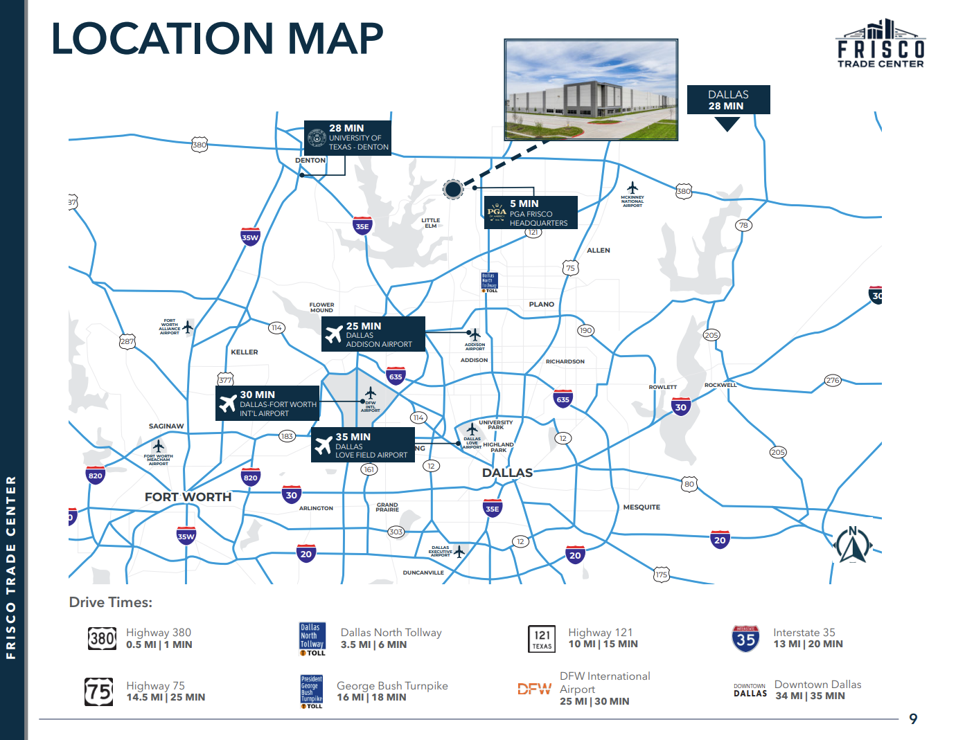 - Positioned in Frisco’s industrial corridor, tapping into the city’s momentum and prestige