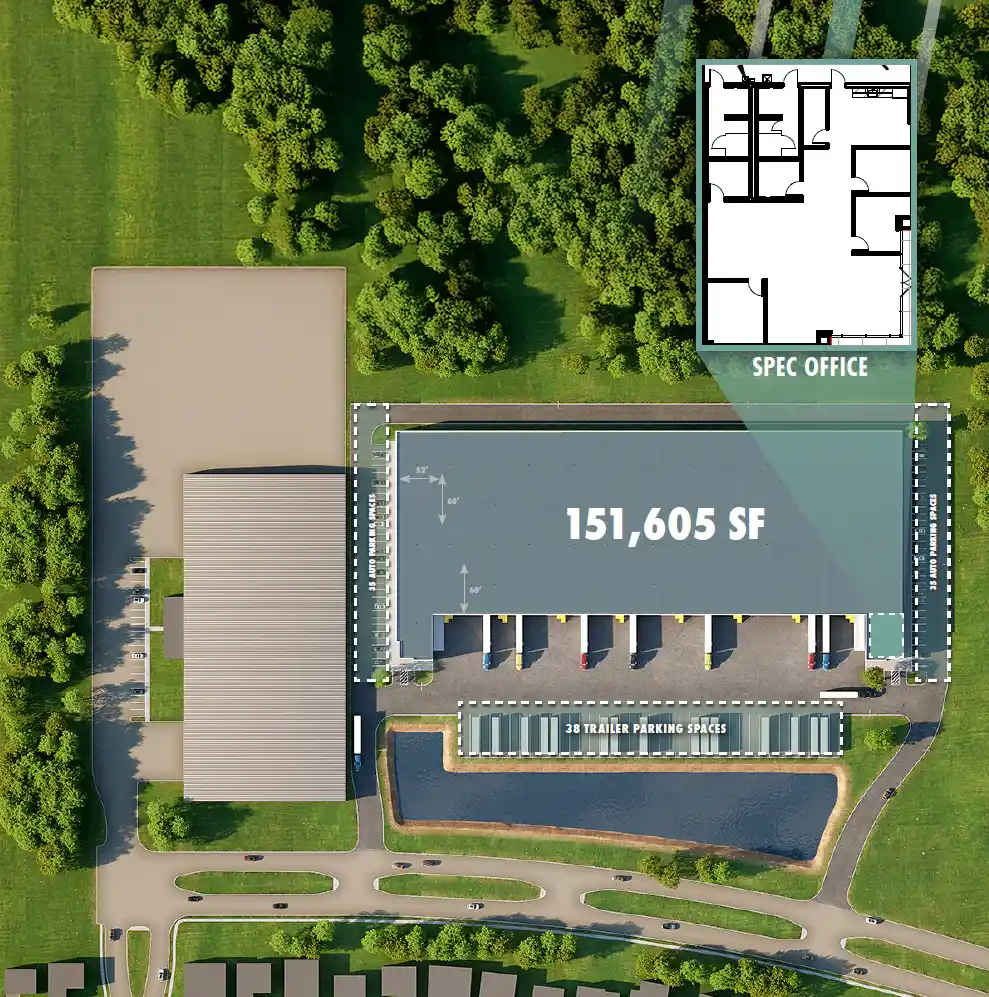 - Fleet Friendly – 38 trailer stalls + 70 auto spaces = optimized truck and employee flow.