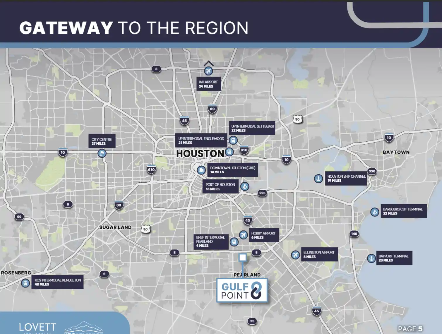- Cargo Port: Port of Houston – 20 miles, approx. 25 minutes