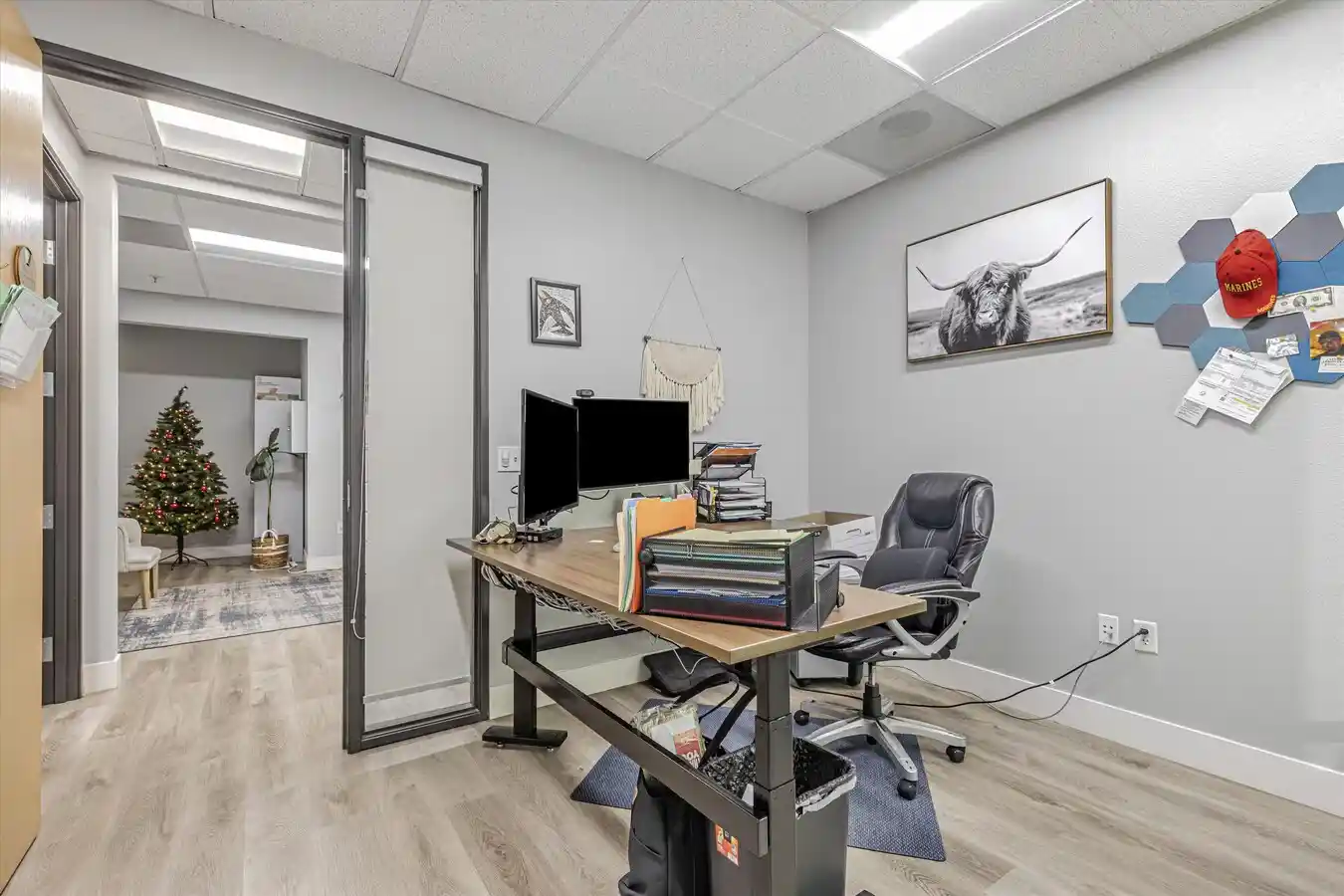 This 3,946-square-foot flex condo at 7602 National Drive is an exceptional investment opportunity. It’s a corner unit that perfectly blends high-quality office space with a functional warehouse, featuring high ceilings, a storage mezzanine, and a clearspan roll-up door.