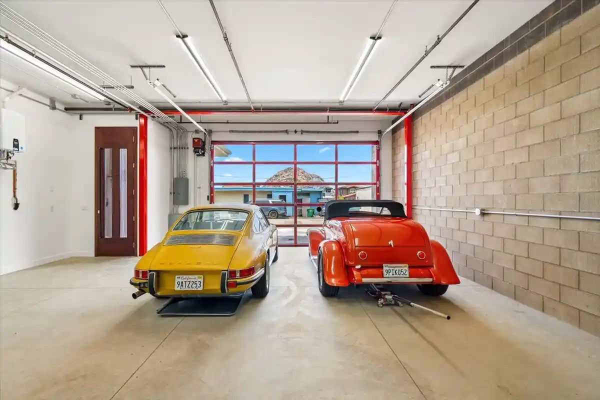 The ground floor offers two distinct commercial spaces: a spacious two-car garage and a light-filled 253 SF storefront, each featuring custom glass roll-up doors and access to a shared ADA-compliant bathroom. Perfect for retail, gallery, office, or creative uses (buyers to verify with City of Morro Bay).