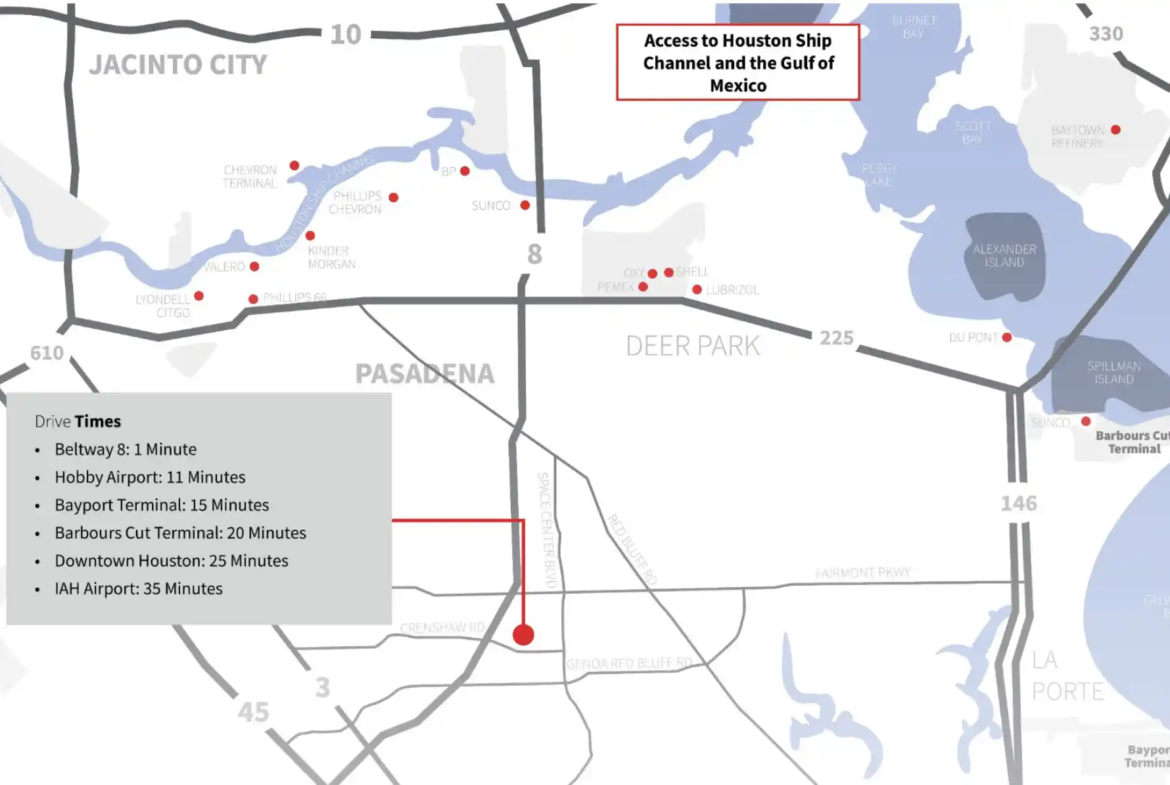 Anchored in Pasadena — long regarded as the industrial lifeblood of Houston’s downstream energy and petrochemical supply chain — this facility is positioned to serve the oil majors, refiners, and port-connected operators that dominate this region.
