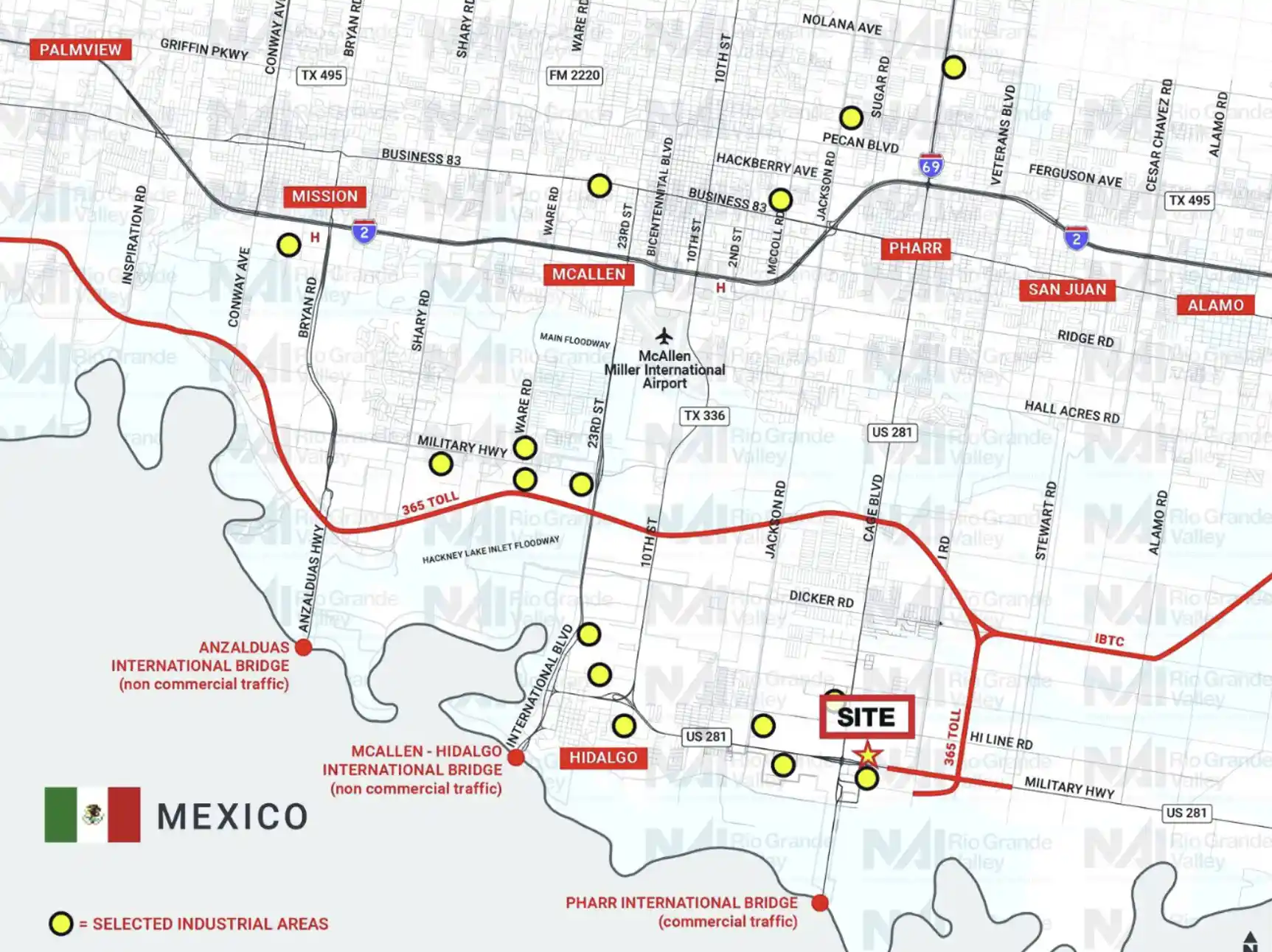 - Bridge Access: Minutes from Pharr International Bridge (primary U.S.–Mexico trade artery)
