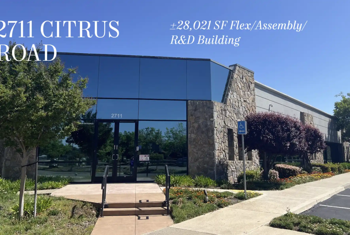 2711 Citrus Rd presents a highly functional and visually impressive flex industrial property in Rancho Cordova, ideally situated along the Hwy 50 corridor. Built in 2003 and renovated in 2015, this ±28,021 SF single-story building combines flexibility, power infrastructure, and turnkey office space for light manufacturing, R&D, biotech/lab, or distribution uses.
