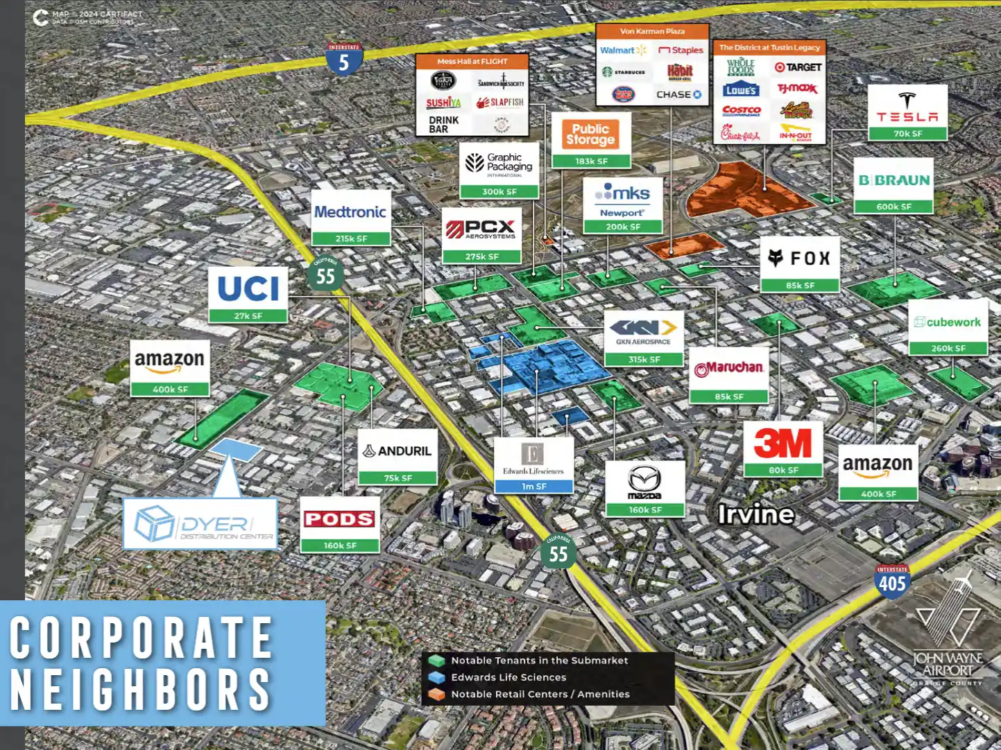 Amazon – Expanded its Orange County footprint with facilities in Santa Ana and Tustin, driving surrounding absorption and land value.
