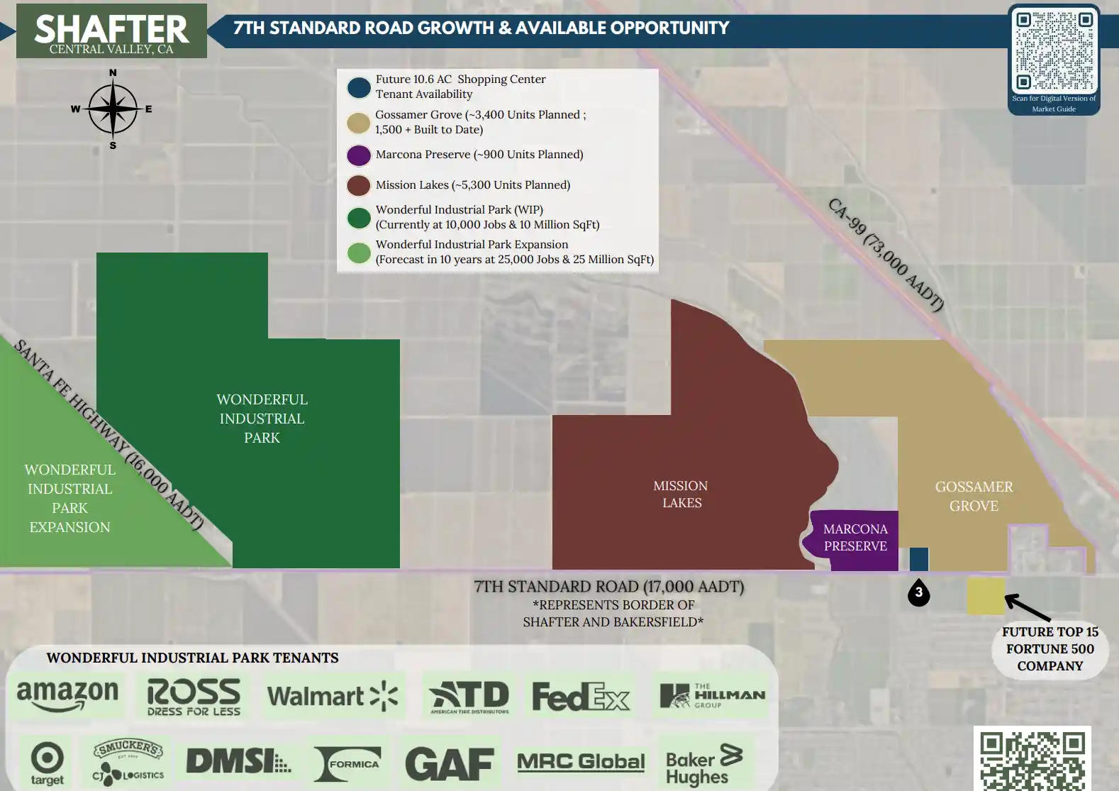 Over the last several years, the market has seen institutional developers like Wonderful Real Estate, Roll Real Estate, and major REITs double down on new construction, with modern distribution hubs exceeding 500,000 SF entering the pipeline. Notable tenants and owner-users—Target, Ross Stores, Walmart, Amazon-related logistics operators, and food/agri-business distributors—have all been part of the Shafter story.
