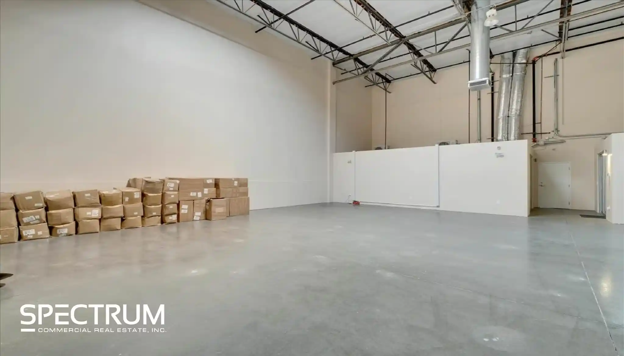 This high-image end-cap industrial/office facility presents a rare opportunity to acquire a fully renovated building within the prestigious Spectrum Business Center at Rye Canyon Business Park. Designed with contemporary finishes and modern functionality, the property features a beautiful lobby/showroom with kitchen and bar, glass/mirror shelving displays, glass staircase, exposed ceilings, glass-partitioned offices, and a custom conference room. The warehouse portion is fully insulated and air-conditioned, offering polished concrete floors, 23’ clear height, and a 12’ x 14’ ground-level loading door. Specialized improvements include a refrigerated cooler room and a greenscreen/media room.